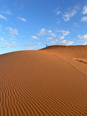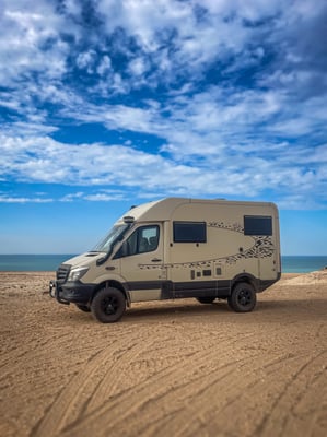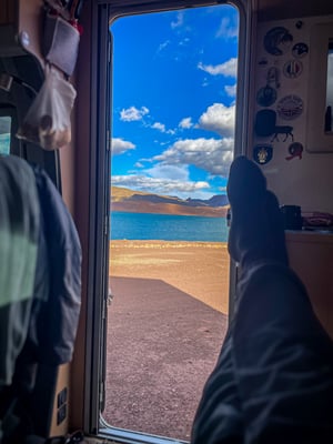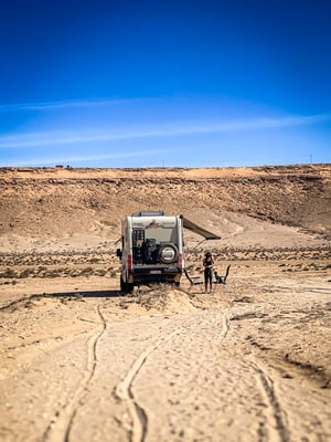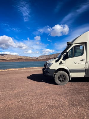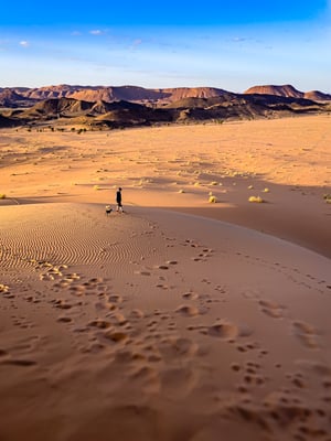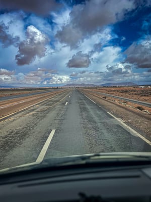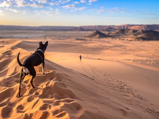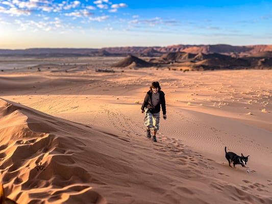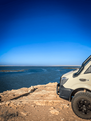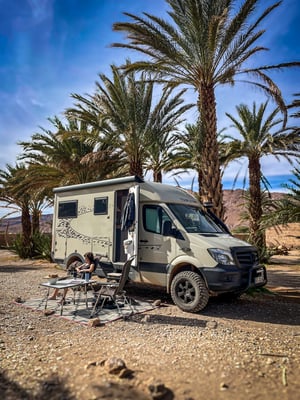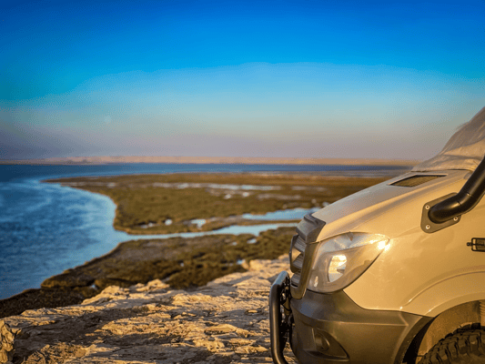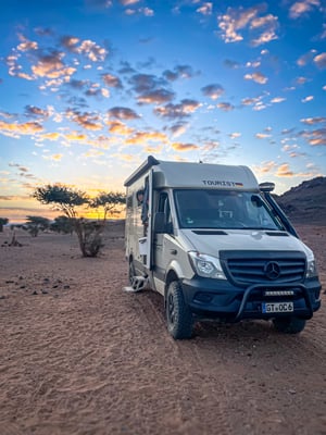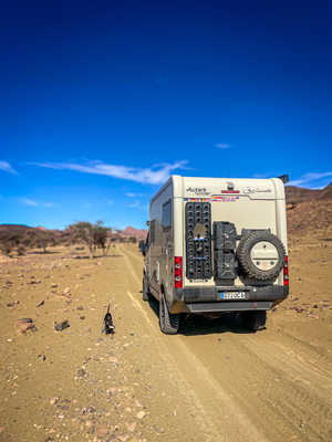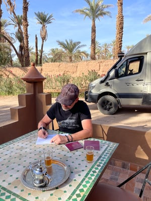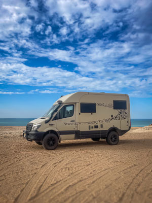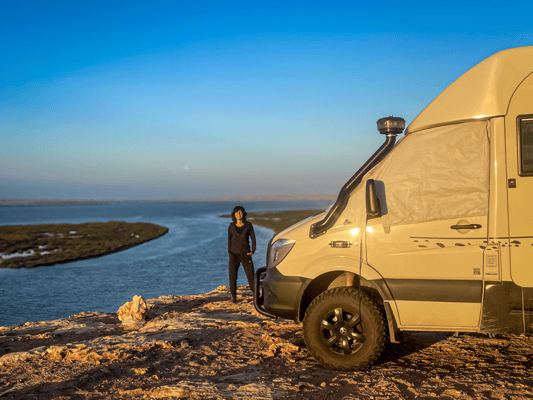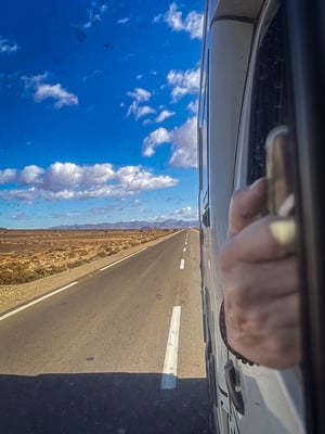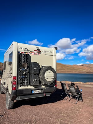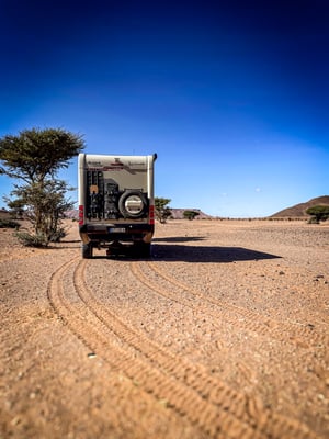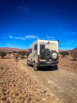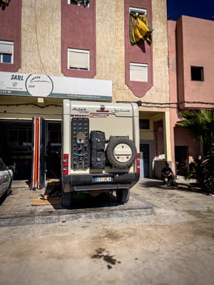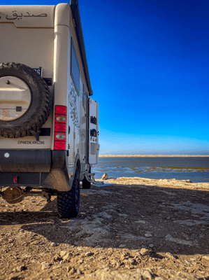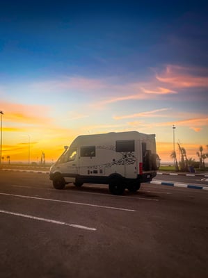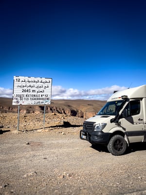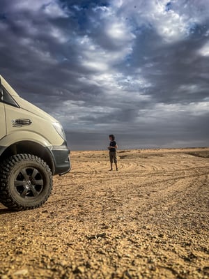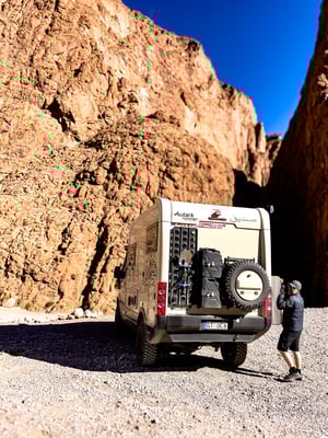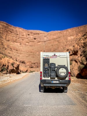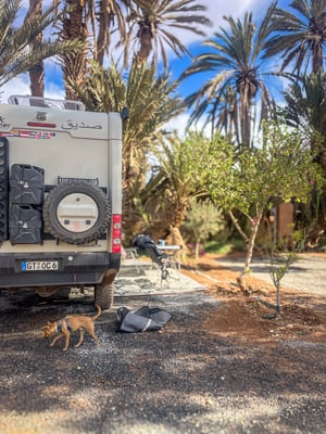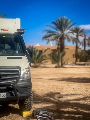 Firstly, even though we, or rather I, am a huge fan of off-road tracks, I think Mauritania would be a bit too much of a good thing, especially for our two furry friends. They're usually quite relaxed when things get bumpy, but we don't want to push them too hard. Speaking of pushing them, the same goes for our rolling home. Even though the van is quite capable, it's still always exciting, especially for me, when we're driving the Sprinter at its limits, and honestly, I don't want to overdo it, because we don't have to. It would be a completely different story if there were no other option, but as long as we have a choice, we'll always take the path of least resistance. We're not off-roaders, but travelers who enjoy leaving the paved roads, and we can do that plenty here in Morocco. Aside from that, I in particular have a healthy respect for the idea of driving myself and my family to areas where there's literally nothing; that level of responsibility is simply too much for me at this point.