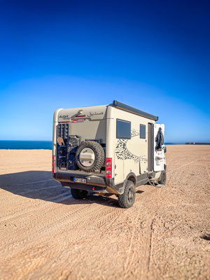 "Was ein grandioser Tag mit Schattenseiten . Nachdem wir die eher langweiligen 300 km von Dakhla abgespult hatten , haben wir diesen schönen Platz direkt am Strand gefunden , der wie wir später erfuhren als verboten gilt da Schleuser wohl ihr Unwesen treiben . Wir sind nicht alleine, in Sichtweite stehen noch zwei Camper und die Polizei sollte später zwecks Passkontrolle wohl auch noch kommen . Nun Gut . Einen herrlichen Strandtag gehabt und nachdem mich zwei Marokkaner baten Werkzeug zur Bergung eines im Sand festgefahrenen PKWs zur Verfügung zu stellen, hab ich nicht gezögert die Sandbleche und die Schaufel zu schnappen und zum Ort des Maleurs zu gehen . Bissl gebuddelt , mittlerweile waren wir zu sechst , es stellte sich heraus das der eigentliche Fahrer nicht zu den Jungs gehörte die mich um Hilfe baten und nachdem die Bleche unter den Vorderrädern verbuddelt waren , konnte es los gehen . Leider hielt der Fahrer nichts vom beherztem Gasgeben und sensiblenUmgang mit der Kupplung und versuchte im Standgas die Kiste aus dem Tiefsand zu holen . Beim zweiten Versuch bat ich um Zugang in sein Cockpit und mit erhöhter Drehzahl und jeder Menge Gas hab ich seinen Honda aus dem Sand geprügelt , mit viel verbaler Unterstützung des Teams 😜😜……Auto war frei und wir hatten uns ne Einladung zu der leckersten Tajine eingefangen , die die Jungs am Strand ( waren Fischer) bereitet hatten . Diese kompromisslose Gastfreundschaft und dieser grandiose Moment bei leckerem traditionellem Essen mit den Händen , dort , es konnte nix besseres geben . Tolle Gespräche geführt , (ging super in Englisch) und eigentlich auch morgen noch eingeladen in Boujdour bei Ali und seiner Familie . Doch leider schlägt Mellie zu ….. nachdem sie dich vor drei Tagen eine Kralle an der Hinterpfote abgerissen hat und wir es bis jetzt geschafft haben das es sich nicht entzündet, war der Abschluss des Tages ein wiederholter Krallenverlust , diesmal an der Vorderpfote . Es scheinen die Rillen unserer Trittstufe zu sein mit denen sie bei ihren Kamikaze Jumps nicht klar kommt . Also kein Kennenlernen der Familie von Ali und ab zum nächsten Tierarzt unseres Vertrauens der sich laut Recherche knapp 180 km entfernt in Laayoune befindet 🤦♂️😔……..nun können wir unsere Trulla durch die Gegend tragen 😜……zum Gassi gehen rein und raus ….Dennoch ein großartiger Tag ……Fazit ? Wir sind doch alle gleich, auch wenn uns Religion, Kultur oder Politik manchmal etwas anderes erzählen will "