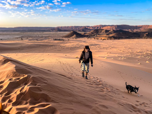 Es ist oft ein Zwiespalt mit dem man konfrontiert ist, denn die ausgesprochen freundliche Art der Marokkaner , jeder grüßt und winkt lächelnd , tröstet nicht darüber hinweg, das schon die Kleinen keinerlei Empathie für ihre Mitgeschöpfe entwickeln, um so mehr lassen wir keine Gelegenheit aus einen dieser abgelehnten Hunde und Katzen zu füttern wann immer wir können.